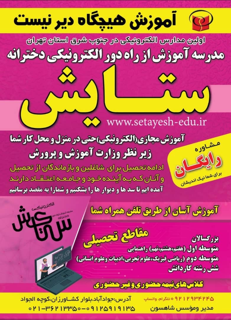 آدرس: ورامین، جوادآباد، میدان خاتم الانبیاء (ص)، جنب پارک محله    شماره تماس 36213390-021
