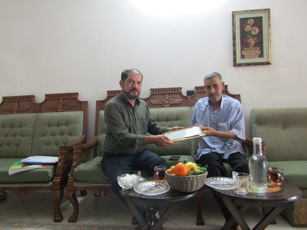 سرهنگ پیرزادی مسئول دفترﮐﺎﻧﻮن ﺑﺎزﻧﺸﺴﺘﮕﺎن شهرستان پاکدشت باحضور در منزل بازنشسته حسین درخواه با ایشان دﯾﺪار و ﮔﻔﺖ و ﮔﻮ ﮐﺮد.