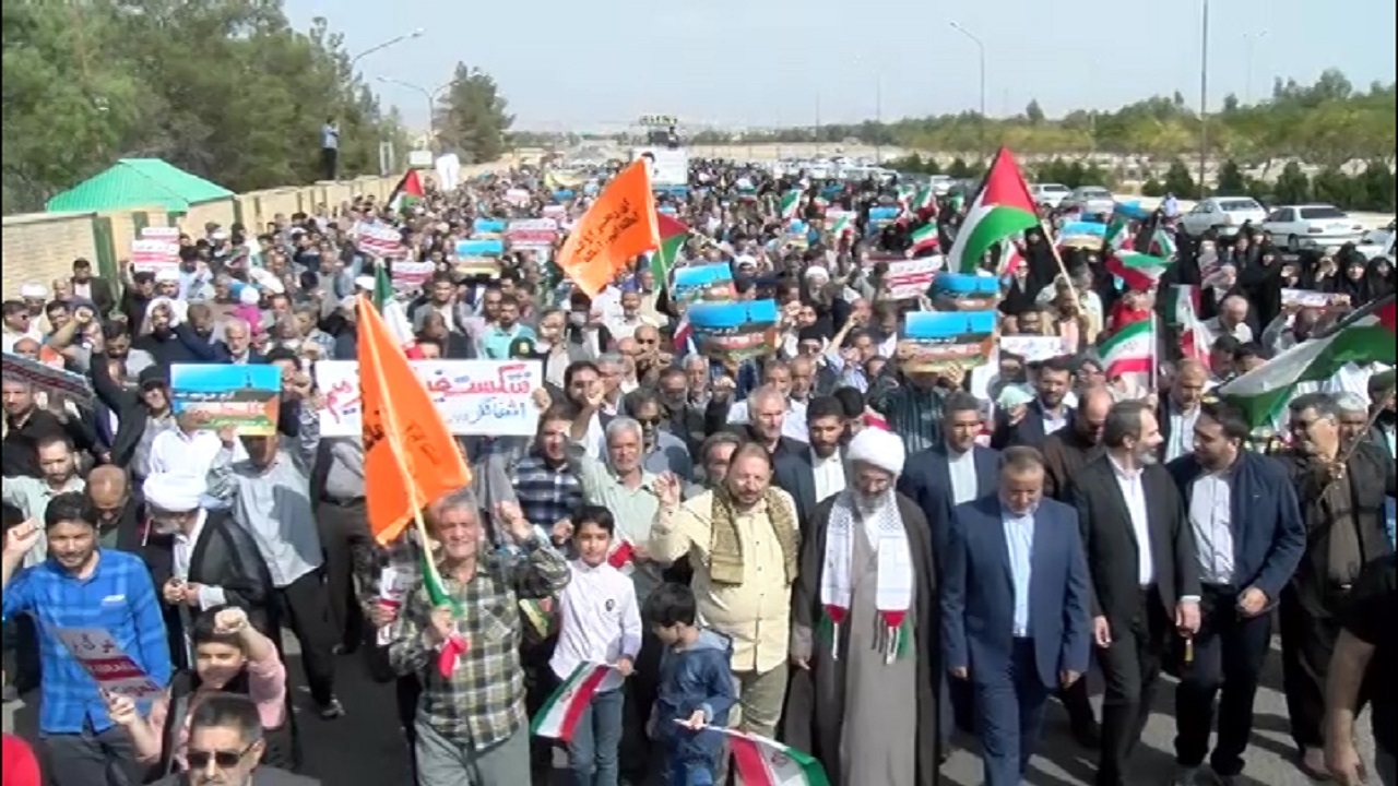 راهپیمایی پر شور مردم سمنان به همراه پیشکسوتان فراجا و نیروهای مسلح استان برای حمایت از مردم مظلوم غزه انجام شد .