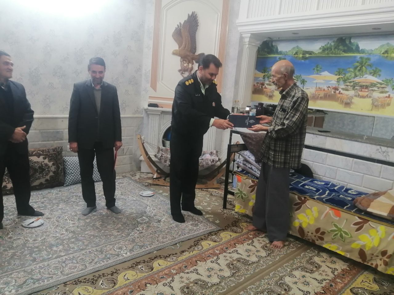 مسئول دفتر نمایندگی کانون بازنشستگان انتظامی شهرستان تربت حیدریه درمعیت فرمانده انتظامی شهرستان زاوه به همراه معاون نیروی انسانی به منظور تکریم وارتقای روحیه بازنشستگان در روز یکشنبه ۹ آذرماه با حضوردرمنزل ۶ نفر از پیشکسوتان با ایشان دیداروگفت و گو کردند.