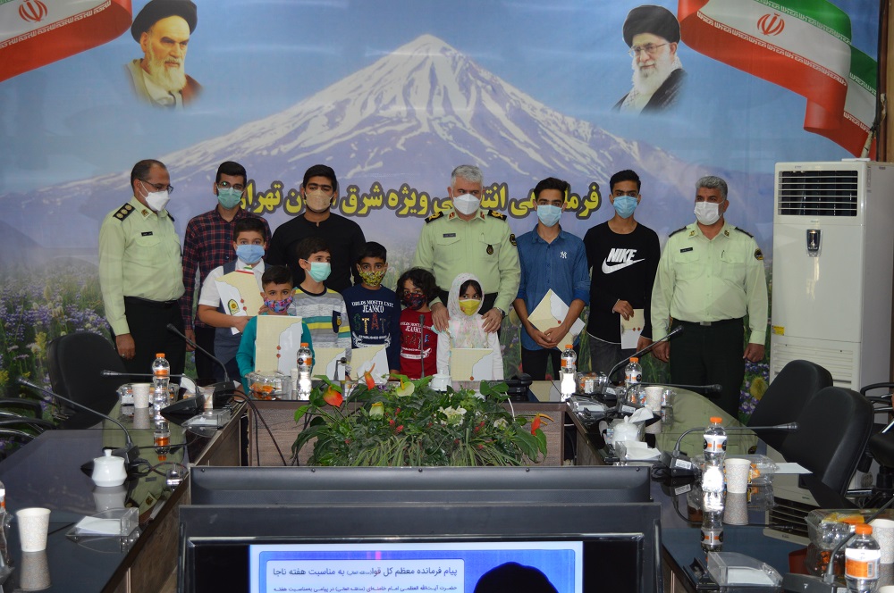 مراسم  تجلیل از 21 نفر ازیادگاران(ایتام) به مناسبت هفته ناجا با حضور سردار عزیزی فرمانده انتظامی ویژه شرق استان تهران در سالن فجر ستاد فرماندهی انتظامی ویژه شرق استان تهران  برگزار شد.